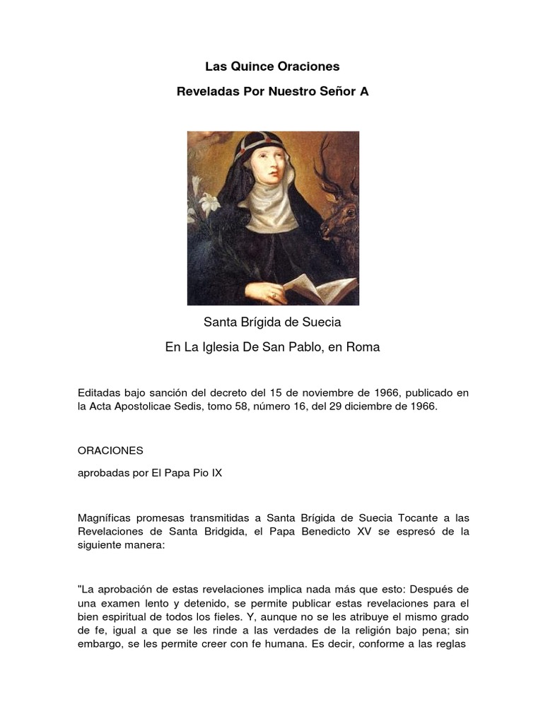 Las quience oraciones de Santa Brigida Oraciones, Santos, Santa brígida