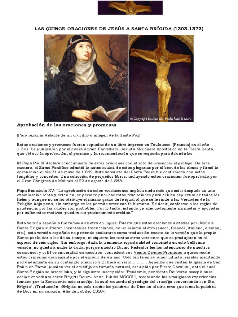 Las 15 Oraciones de Santa Brigida PDF Oración orador del Señor