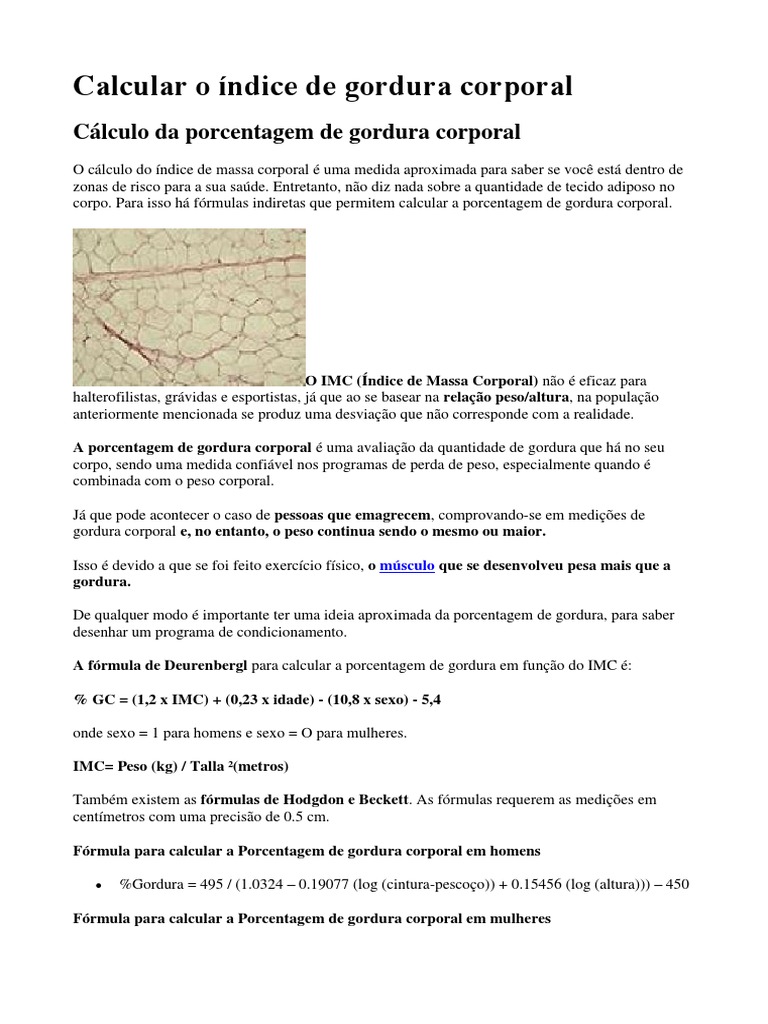 Calcular o Índice de Gordura Corporal PDF