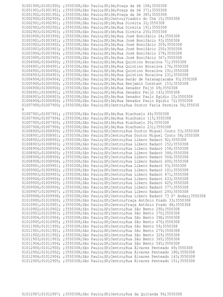 Estrutura do CEP O primeiro código postal do Brasil (01001-000) está atribuído à Praça da Sé, em São Paulo, SP. Sub-regiões de CEP de Minas Gerais. Os primeiros cinco dígitos têm a mesma função no sistema vigente nos anos 1970 e 80 e no atual: localizar a região, o estado, o município e a região ou o distrito. O bairro (na maioria dos casos) e a rua (ou, se grande receptor de.