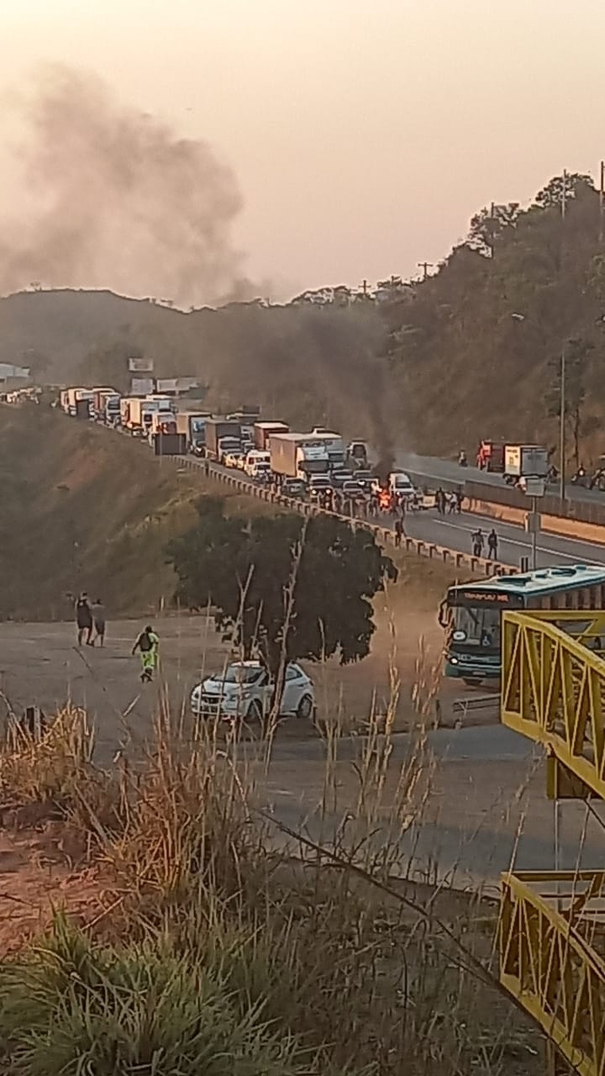 Moradores de Ribeirão das Neves, na Região Metropolitana de Belo Horizonte, interditaram a BR-040, na altura do km 517, no sentido Sete Lagoas, no início da manhã desta terça-feira (8), em.