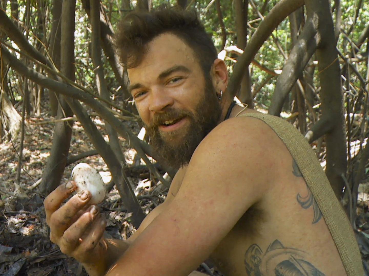 Em LARGADOS E PELADOS sobrevivencialistas são desafiados a trabalhar em duplas e ficar sem comida, água e roupas por 21 dias em meio à natureza selvagem. Hom.