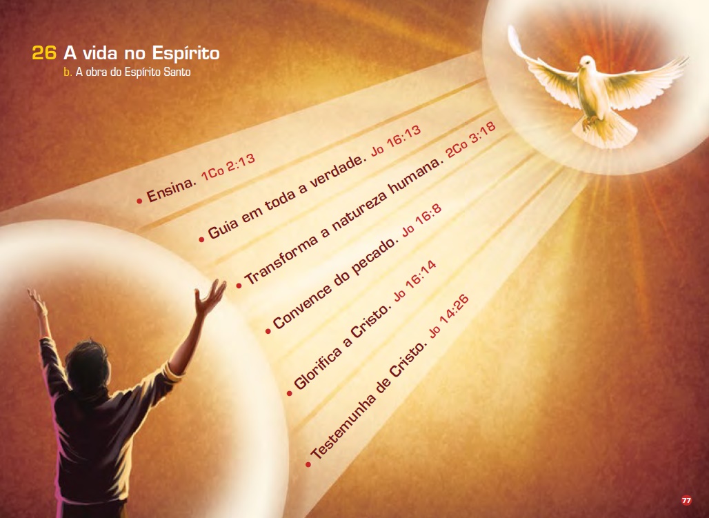 Por isso, o Espírito Santo é chamado Espírito de Vida ( Romanos 8:2 ). Ele guia - o Espírito Santo nos ensina como viver como Deus quer. Ele mora dentro do crente e ajuda-o a encontrar o caminho que deve seguir. É Ele que nos ajuda a interpretar a Bíblia corretamente e a aplicá-la nas nossas vidas ( Gálatas 5:16 ).