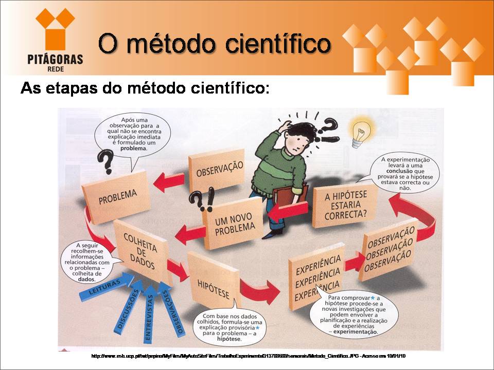 Principais etapas do método científico. Vejamos em que consiste basicamente cada uma delas: * Observação: Diante de algum sistema ou alguma situação que ocorre na natureza, o cientista é levado pela curiosidade e pela necessidade a buscar formas de entender o que leva aquilo a acontecer. Assim, a partir da observação, que pode ser a.