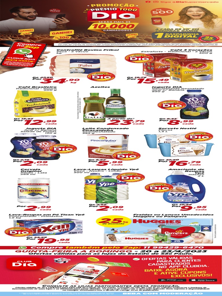 em. 16 de março de 2023. De. admin_ag. O Dia Brasil vai premiar mais de 10 mil clientes. É a ação inédita "Prêmio Todo Dia", que tem como mote fazer com que os consumidores ganhem vale-compras especiais. A cada R$50 em compras nas lojas do Dia de São Paulo e Minas Gerais o participante terá direito a uma raspadinha digital e.