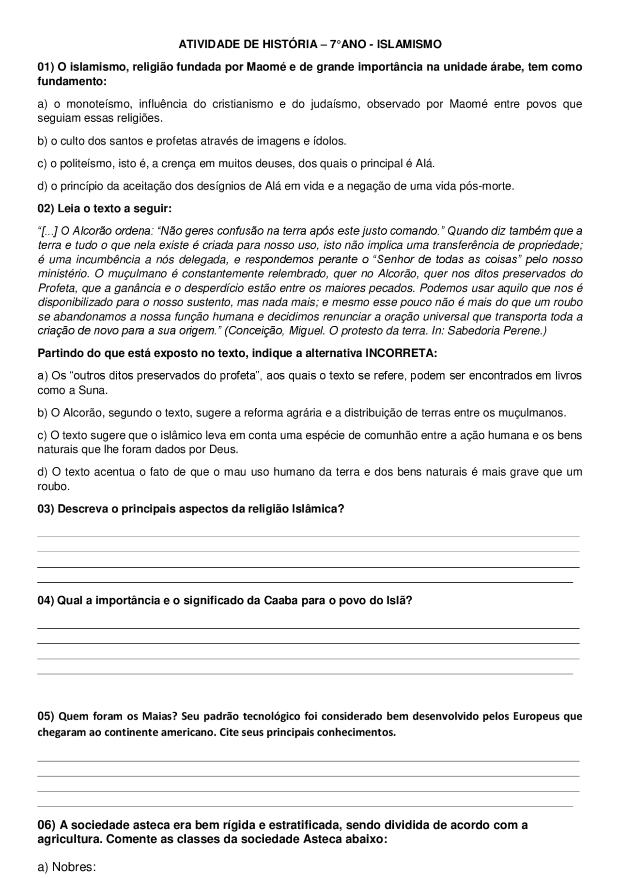 Atividade Avaliativa - Setimo Ano. Islã e África | PDF. O Scribd é o maior site social de leitura e publicação do mundo.