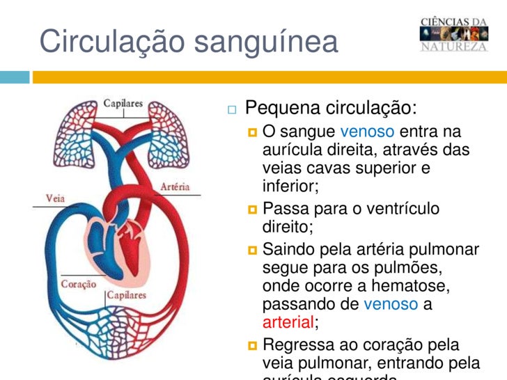 As veias levam o sangue dos órgãos e tecidos para o coração, enquanto as artérias levam o sangue do coração para os órgãos e tecidos. Já as células, recebem sangue através de vasos sanguíneos de menor porte denominados de arteríolas, vénulas e capilares. Em um adulto circulam, em média, seis litros de sangue. Funções do Sangue